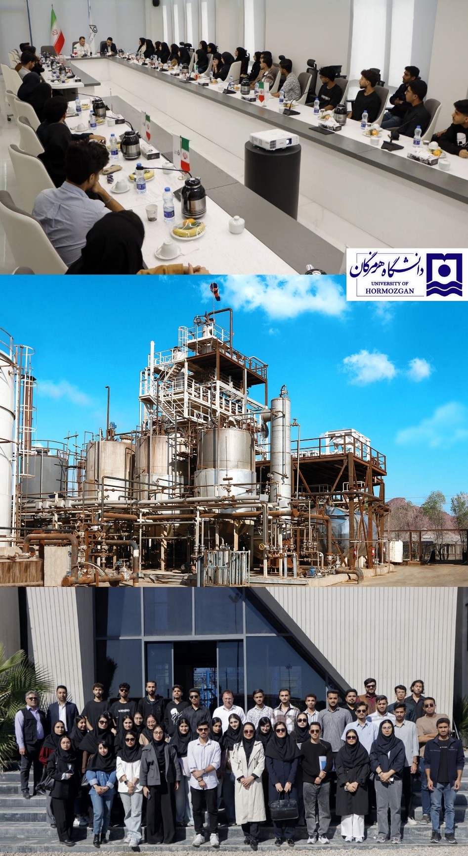 3 دی 1404 بازدید دانشجویان مهندسی شیمی و نفت دانشگاه هرمزگان از شرکت پالایش نفت آفتاب دانشجویان دانشکده مهندسی شیمی و نفت دانشگاه هرمزگان، با پشتیبانی معاونت فرهنگی و اجتماعی و پیگیری انجمن علمی مهندسی شیمی و همراهی سرکار خانم دکتر عظیمی و سرکار خانم دکتر اکبری، از اعضای هیات علمی دانشگاه هرمزگان، بازدیدی علمی و تخصصی از شرکت پالایش نفت آفتاب انجام دادند. این بازدید با هدف ارتقای توانمندیهای عملی و مهارتهای حرفهای دانشجویان، آشنایی با فرآیندهای پیشرفته پالایش نفت و مدیریت تولید، و همچنین ایجاد انگیزه برای کارآفرینی و فعالیت در صنعت نفت کشور برگزار شد.