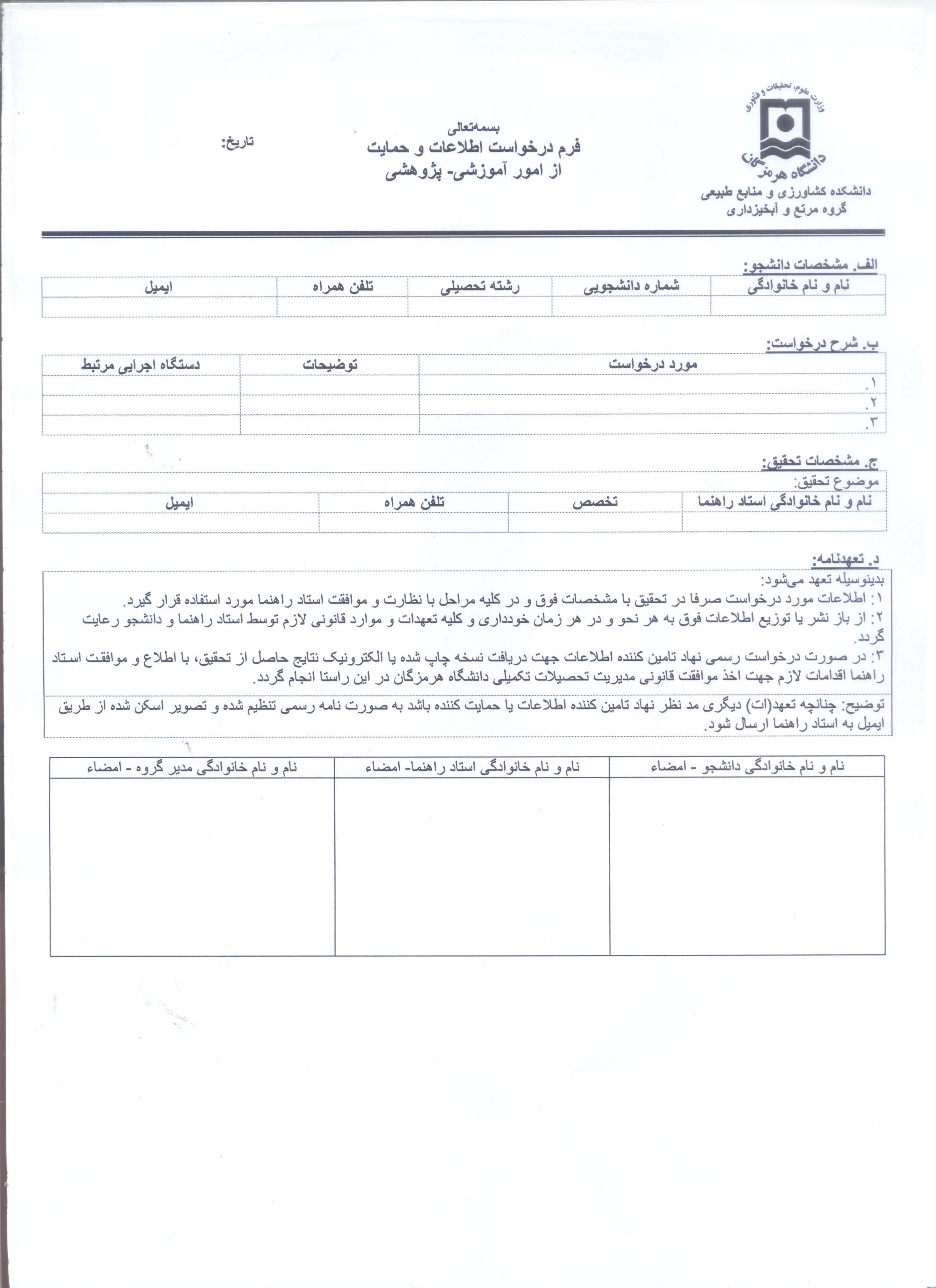 فرم درخواست داده از ادارات خارج ازدانشگاه(2001)